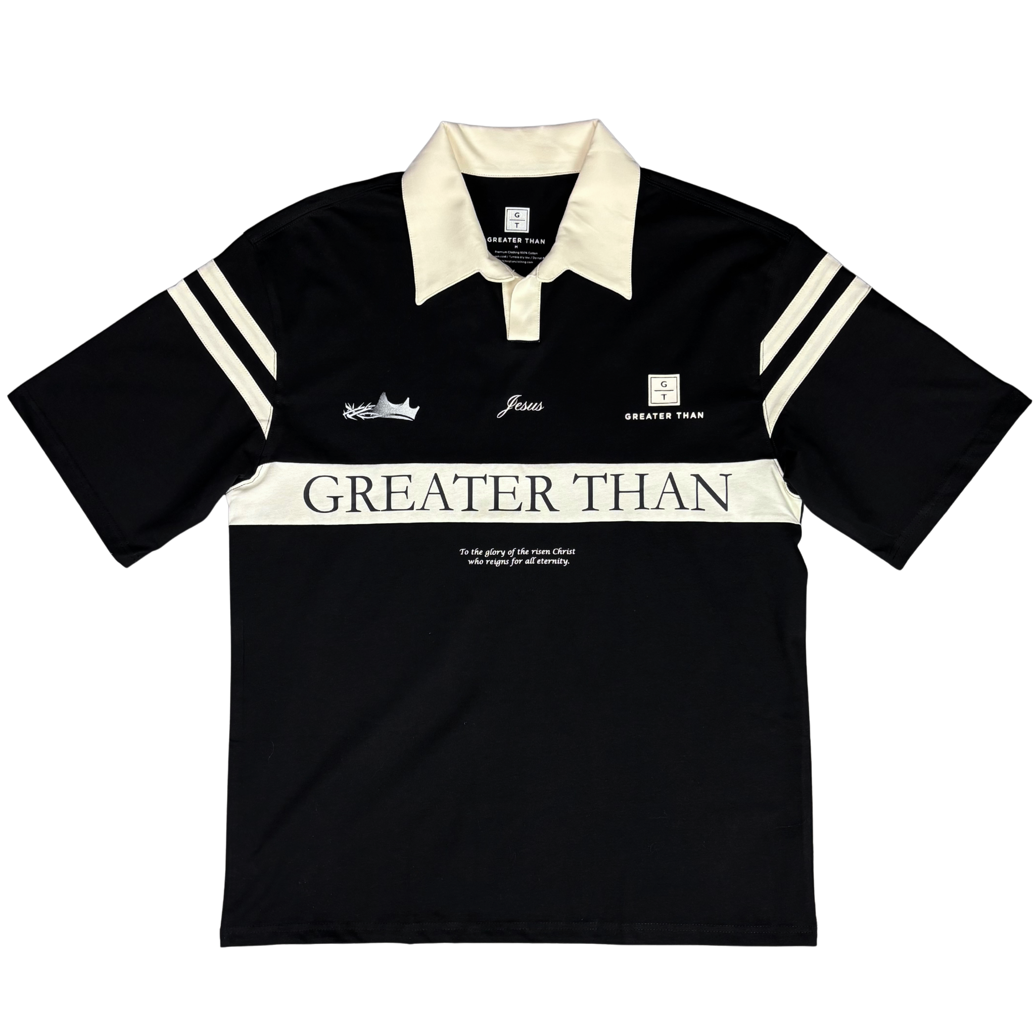 This jersey features all of the logos and designs that have become well known, with Jesus at the centre of the jersey and the centre of it all (of course!).